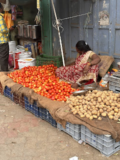 One other thing I have been meaning to comment on is the style of dress here, particularly in the South. I have been surprised that the majority of women, in the markets for example, have been wearing saris rather than Western dress. These are generally made of cheaper materials (cotton, nylon), but are incredibly colorful and vibrant. Made me realize how drab we can be in the West (or maybe how drab I am!).